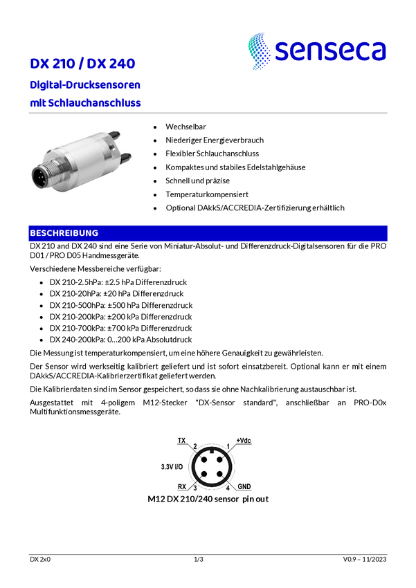 486674 Czujnik ciśnienia Senseca 486674, 2.5 hPa (max), 1 szt.