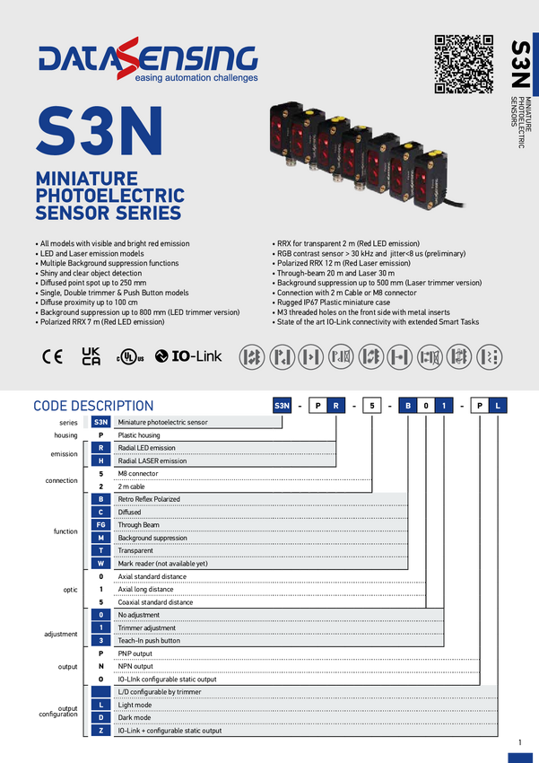 Czujnik dyfuzyjny Datasensing S3N-PR-5-C13-OZ 95B010800 Teach-In 1 szt.