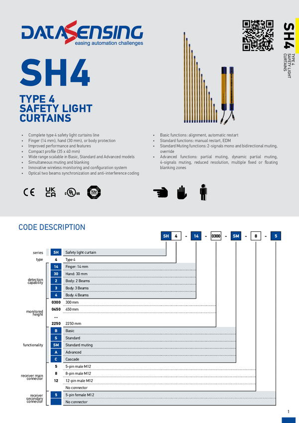 Datasensing Kurtyna świetlna SH4-30-1200-S-8 Wysokość ochronna 1200 mm 24 V/DC