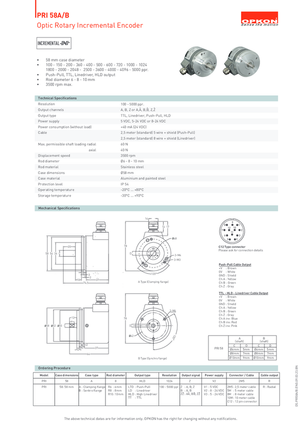 PRI-58-A-R10-HLD-1000-Z-V3-2M5-R Enkoder obrotowy inkrementalny Opkon PRI-58-A-R10-HLD-1000-Z-V3-2M5-R Optyc...