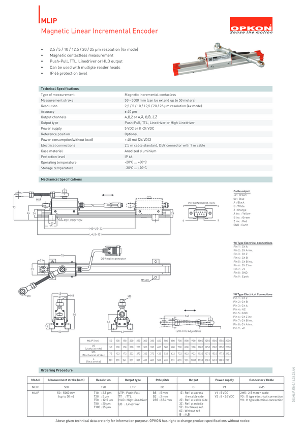 MLIP-100-T20-HLD-B5-B-V2-2M5 Transduktor Opkon MLIP-100-T20-HLD-B5-B-V2-2M5, 24 V/DC, Długość skoku...