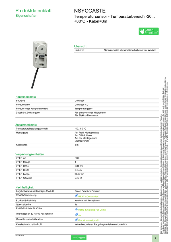Schneider Electric NSYCCASTE Czujnik temperatury