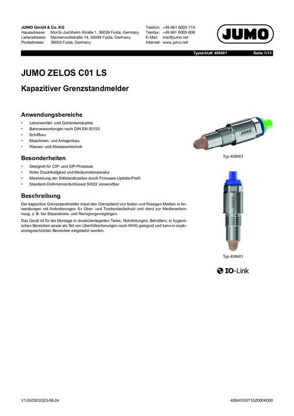 00771685 Jumo Pojemnościowy wykrywacz poziomu 408401/000-036-0-387-458-500/0...
