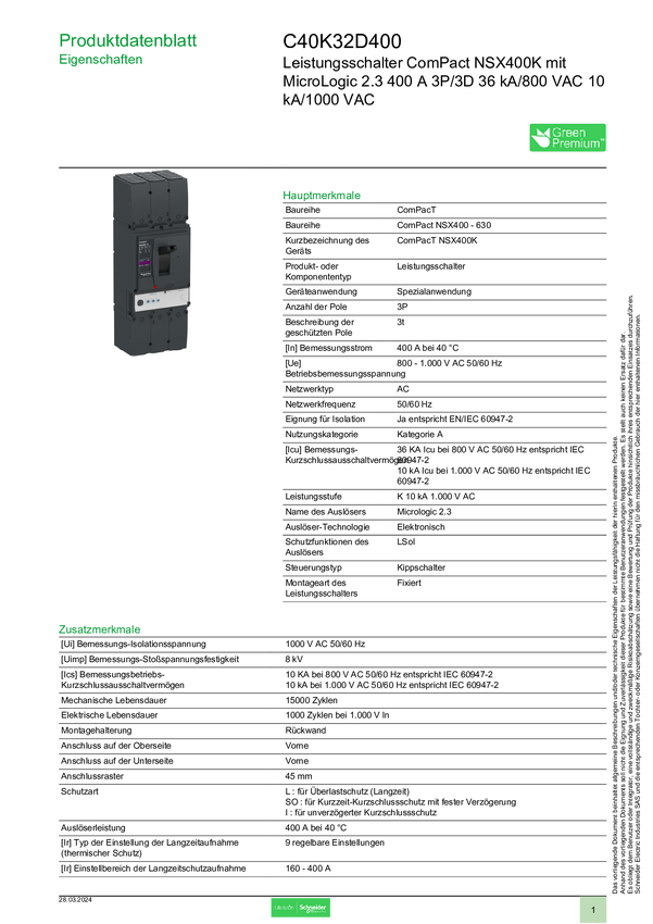 C40K32D400 Wyłącznik zasilania Schneider Electric C40K32D400 1 szt.