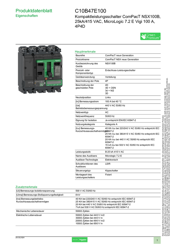 C10B47E100 Wyłącznik zasilania Schneider Electric C10B47E100 1 szt.