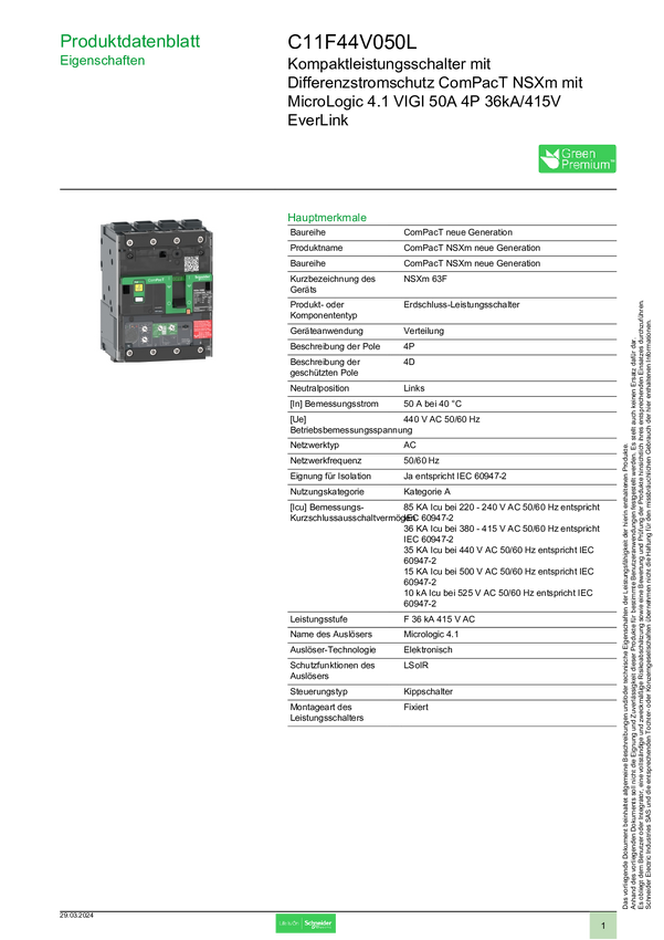 C11F44V050L Wyłącznik zasilania Schneider Electric C11F44V050L 1 szt.