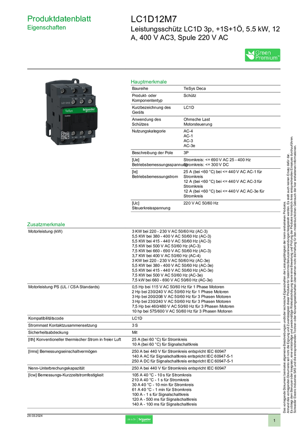 Schneider Electric LC1D12M7 Stycznik 1 szt.