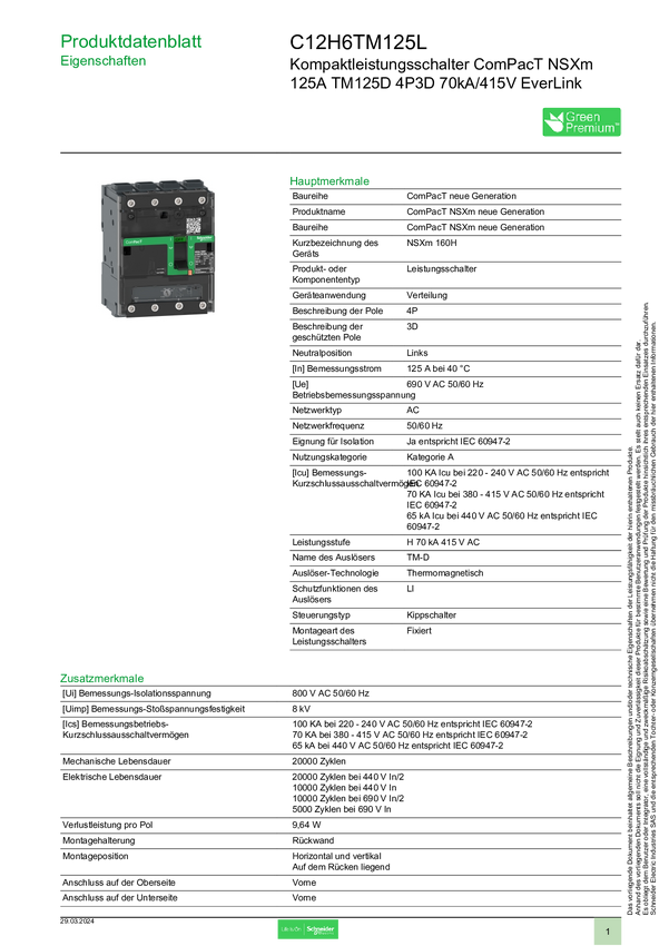 C12H6TM125L Wyłącznik zasilania Schneider Electric C12H6TM125L 1 szt.