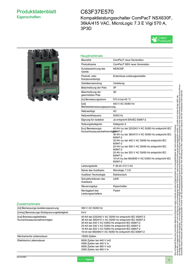C63F37E570 Wyłącznik zasilania Schneider Electric C63F37E570 1 szt.