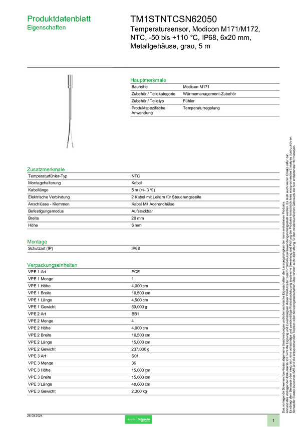TM1STNTCSN62050 Czujnik temperatury Schneider Electric TM1STNTCSN62050