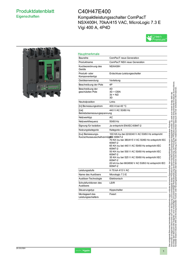 Wyłącznik zasilania Schneider Electric C40H47E400 1 szt.