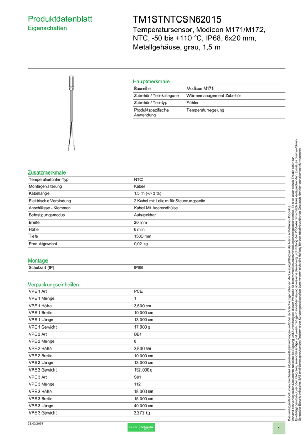 TM1STNTCSN62015 Czujnik temperatury Schneider Electric TM1STNTCSN62015
