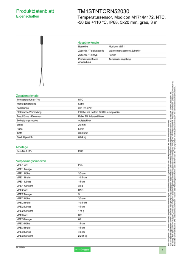 Schneider Electric TM1STNTCRN52030 Czujnik temperatury
