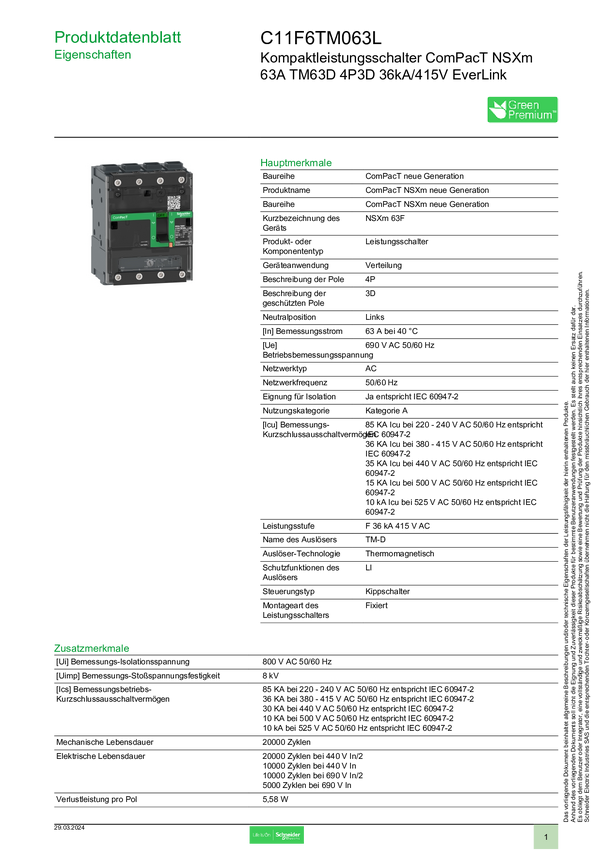 C11F6TM063L Wyłącznik zasilania Schneider Electric C11F6TM063L 1 szt.