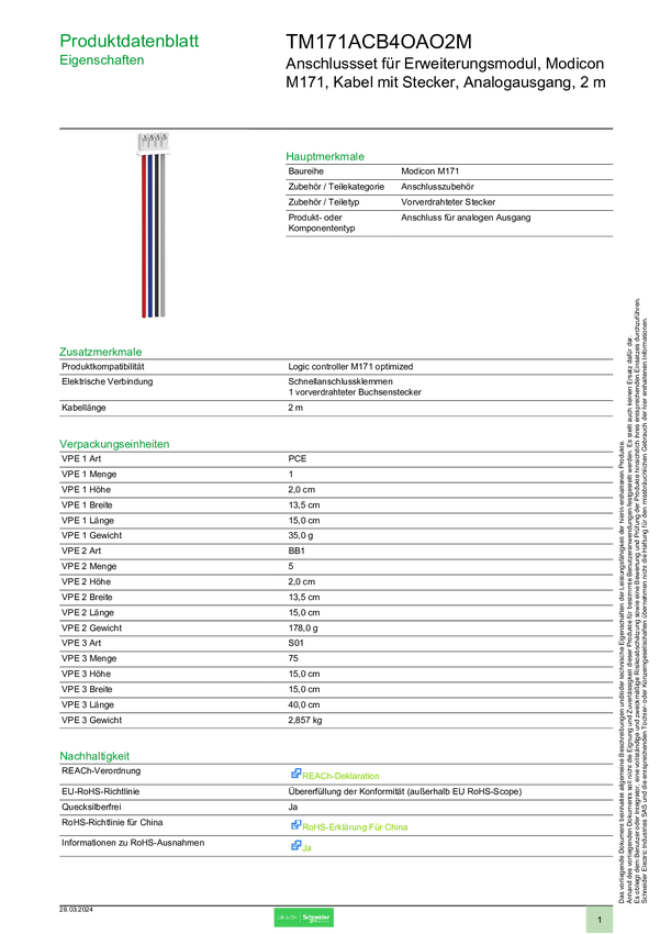 TM171ACB4OAO2M Przewód Schneider Electric TM171ACB4OAO2M TM171ACB4OAO2M, 5 szt.