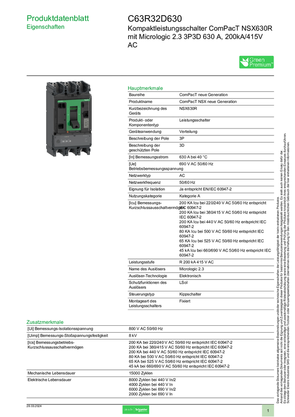 C63R32D630 Wyłącznik zasilania Schneider Electric C63R32D630 1 szt.