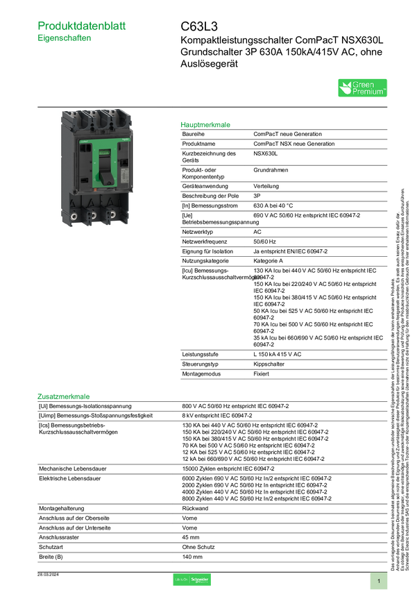 Wyłącznik zasilania Schneider Electric C63L3 1 szt.