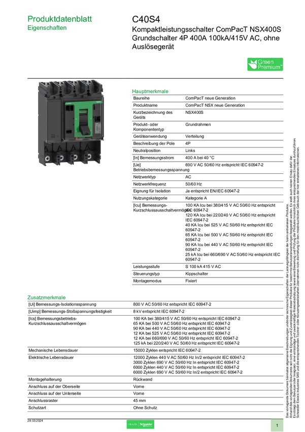 Wyłącznik zasilania Schneider Electric C40S4 1 szt.