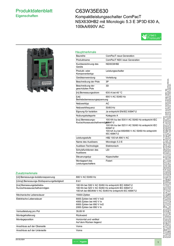 C63W35E630 Wyłącznik zasilania Schneider Electric C63W35E630 1 szt.