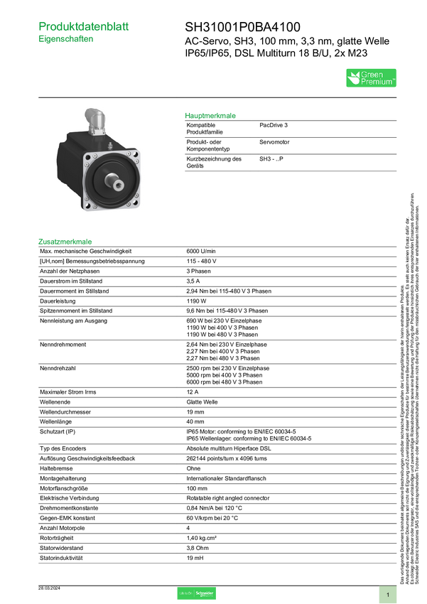 Silnik serwo Schneider Electric SH31001P0BA4100