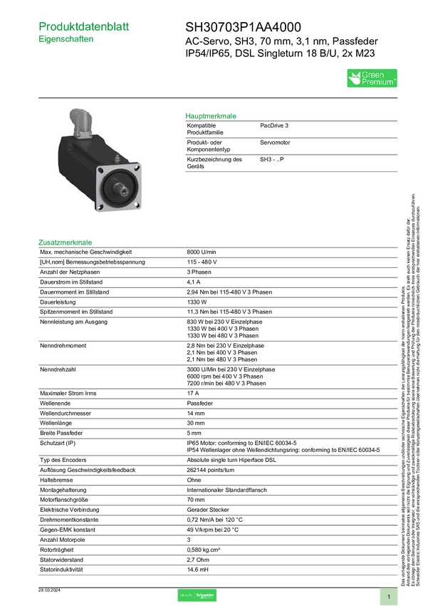 Silnik serwo Schneider Electric SH30703P1AA4000