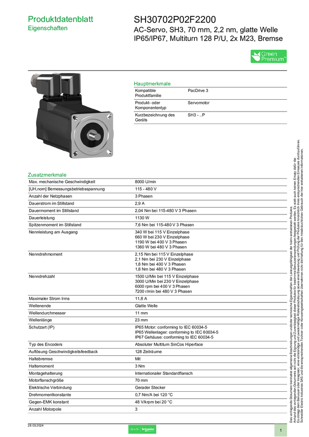 SH30702P02F2200 Silnik serwo Schneider Electric SH30702P02F2200