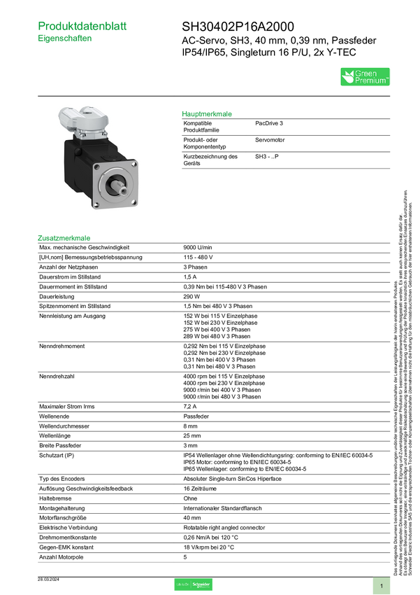 SH30402P16A2000 Silnik serwo Schneider Electric SH30402P16A2000