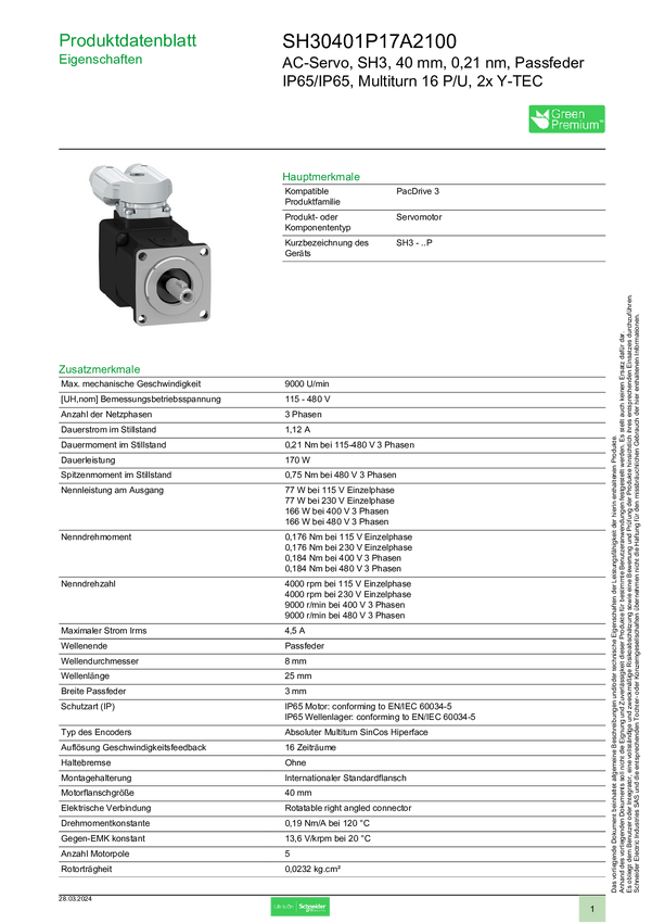 SH30401P17A2100 Silnik serwo Schneider Electric SH30401P17A2100