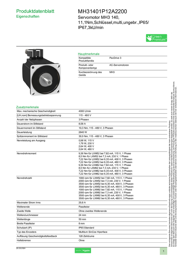 MH31401P12A2200 Silnik serwo Schneider Electric MH31401P12A2200