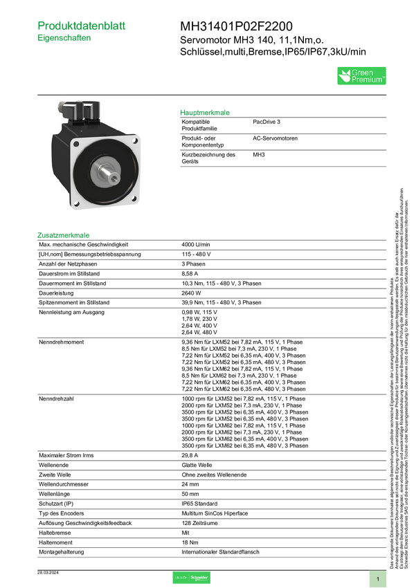 MH31401P02F2200 Silnik serwo Schneider Electric MH31401P02F2200