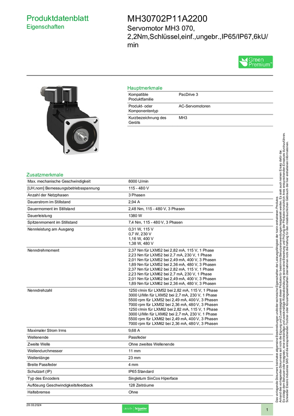 MH30702P11A2200 Silnik serwo Schneider Electric MH30702P11A2200