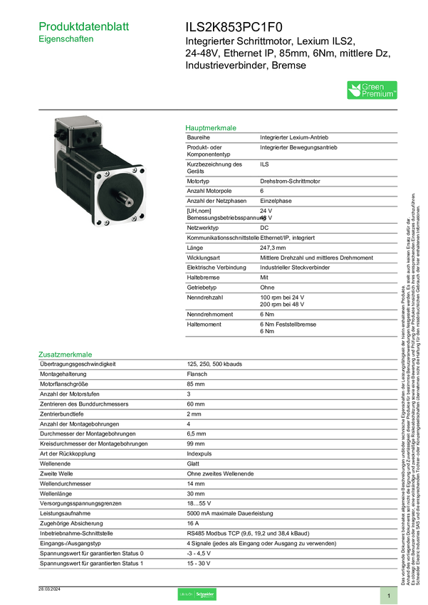 ILS2K853PC1F0 Silnik krokowy Schneider Electric ILS2K853PC1F0