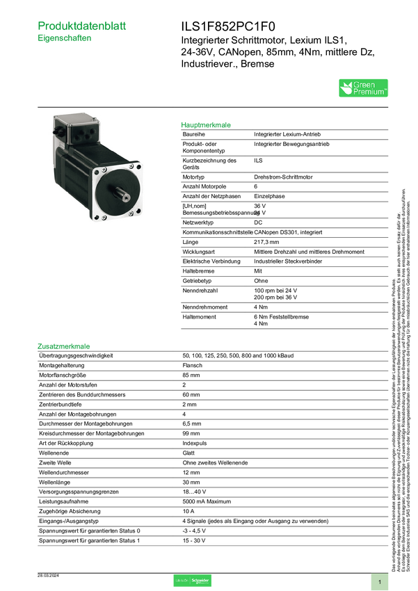 Silnik krokowy Schneider Electric ILS1F852PC1F0