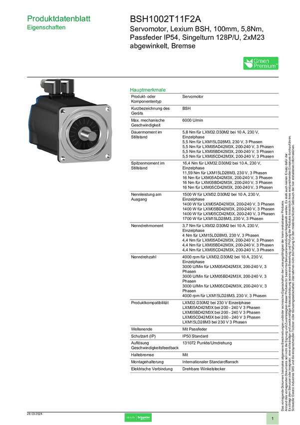 Silnik serwo Schneider Electric BSH1002T11F2A
