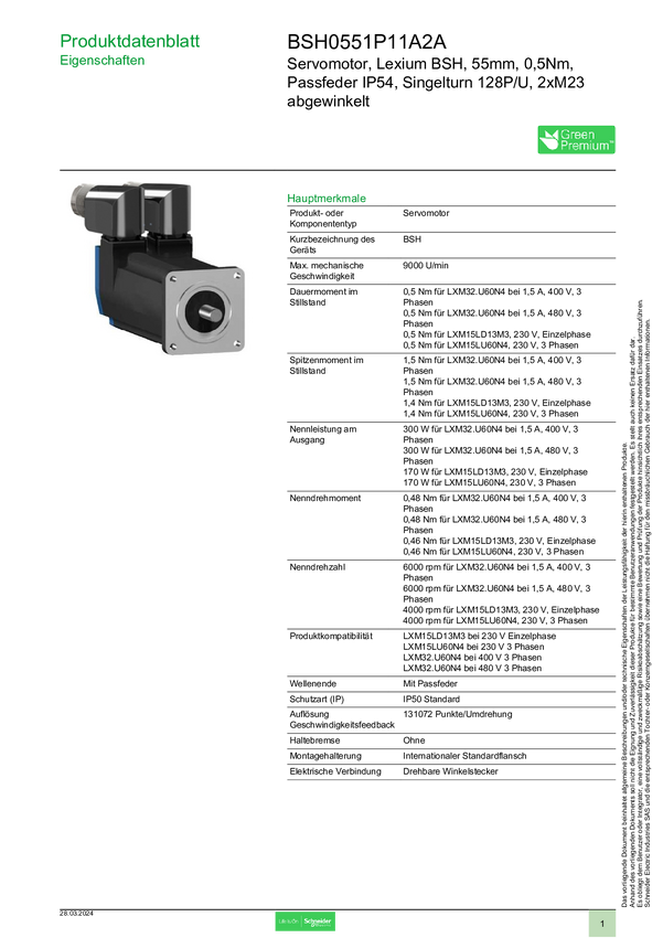 Silnik serwo Schneider Electric BSH0551P11A2A