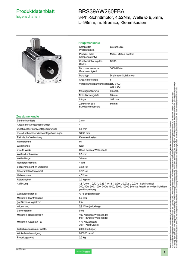 Silnik krokowy Schneider Electric BRS39AW260FBA