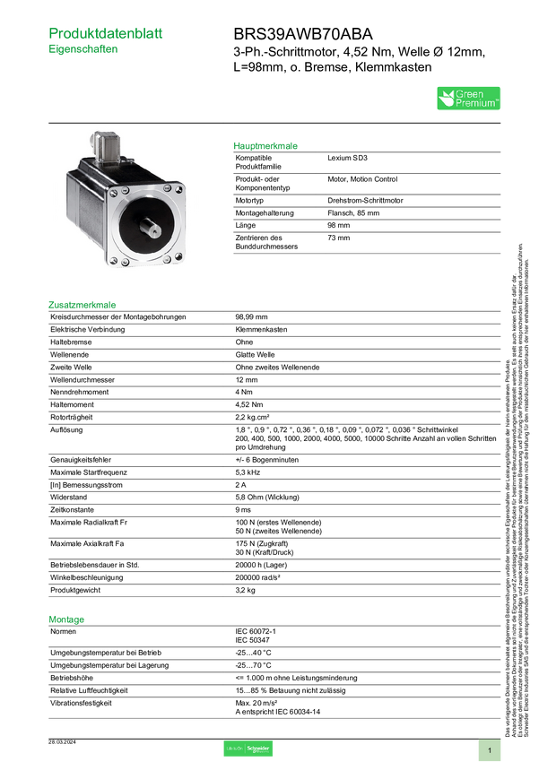 BRS39AWB70ABA Silnik krokowy Schneider Electric BRS39AWB70ABA