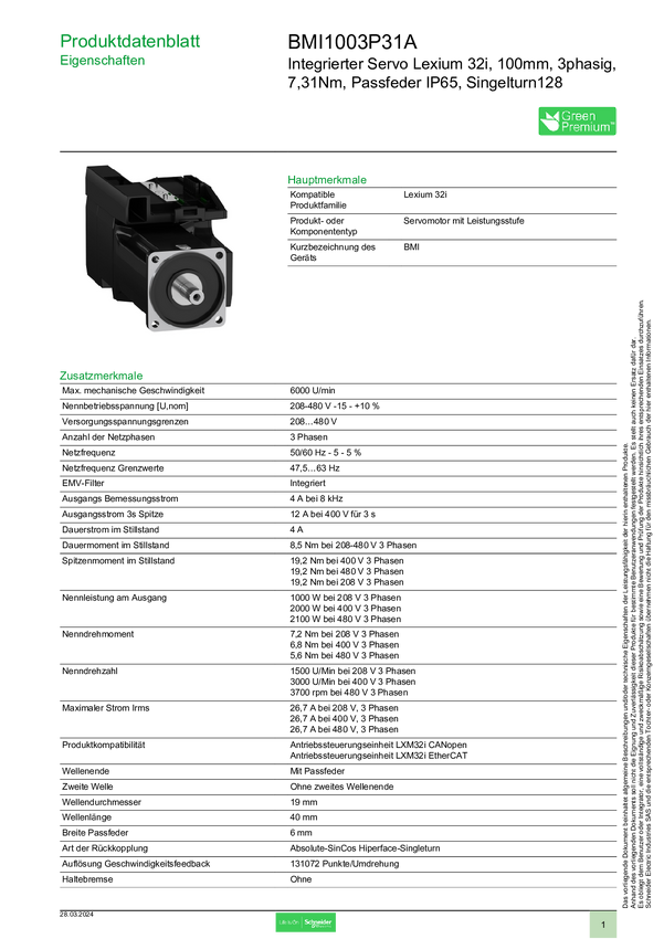 BMI1003P31A Silnik serwo Schneider Electric BMI1003P31A