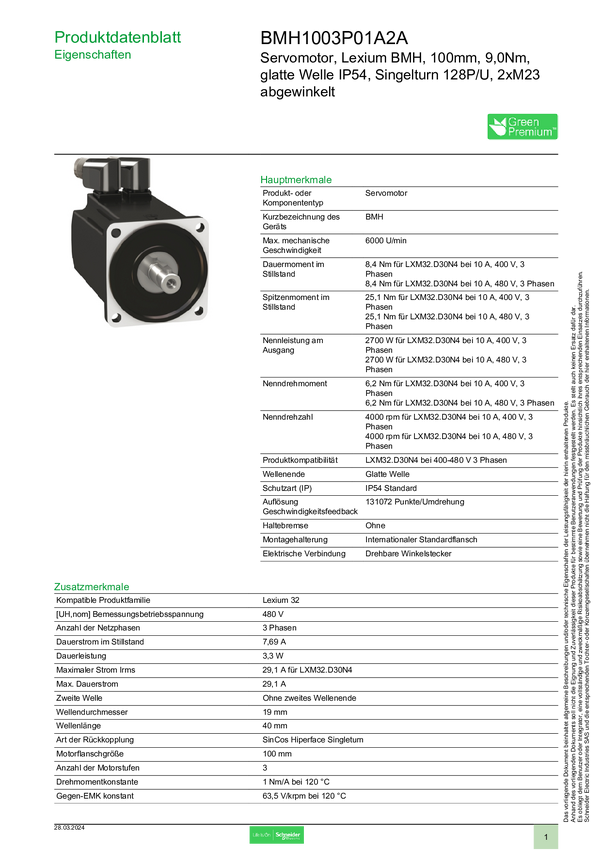 BMH1003P01A2A Silnik serwo Schneider Electric BMH1003P01A2A