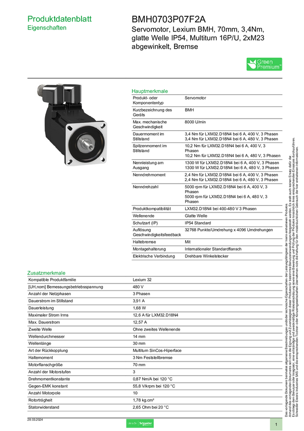 BMH0703P07F2A Silnik serwo Schneider Electric BMH0703P07F2A