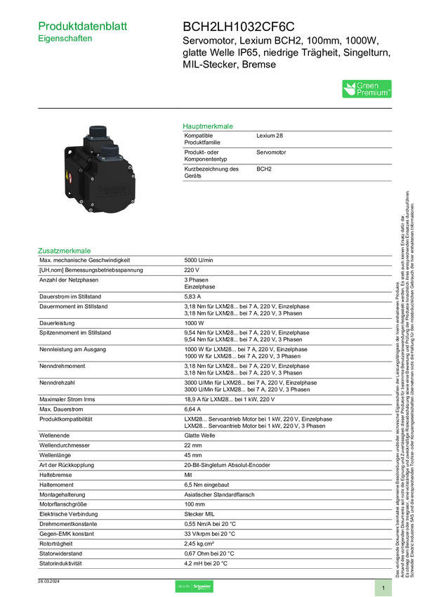 BCH2LH1032CF6C Silnik serwo Schneider Electric BCH2LH1032CF6C