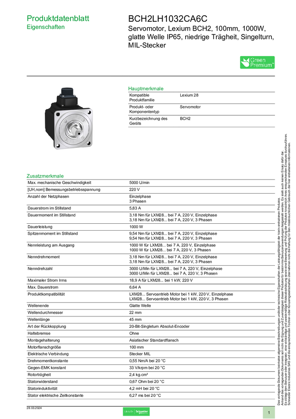 BCH2LH1032CA6C Silnik serwo Schneider Electric BCH2LH1032CA6C