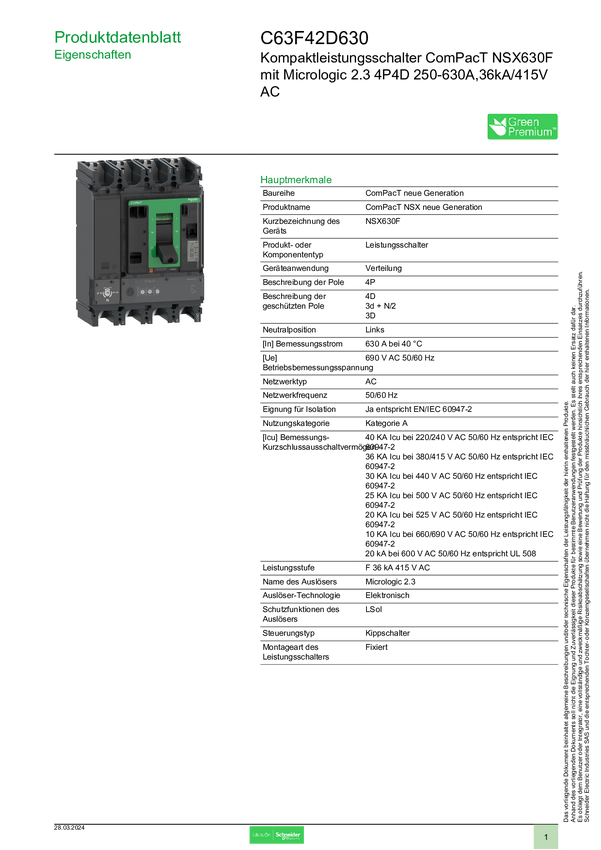 C63F42D630 Wyłącznik zasilania Schneider Electric C63F42D630 1 szt.