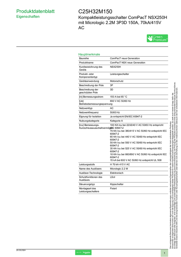 C25H32M150 Wyłącznik zasilania Schneider Electric C25H32M150 1 szt.