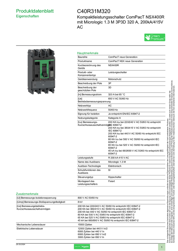 C40R31M320 Wyłącznik zasilania Schneider Electric C40R31M320 1 szt.