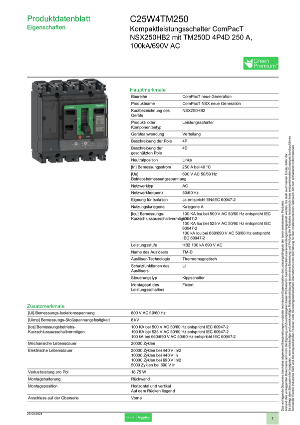 C25W4TM250 Wyłącznik zasilania Schneider Electric C25W4TM250 1 szt.