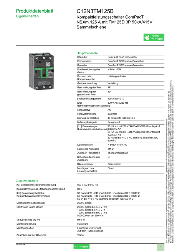 Wyłącznik zasilania Schneider Electric C12N3TM125B 1 szt.