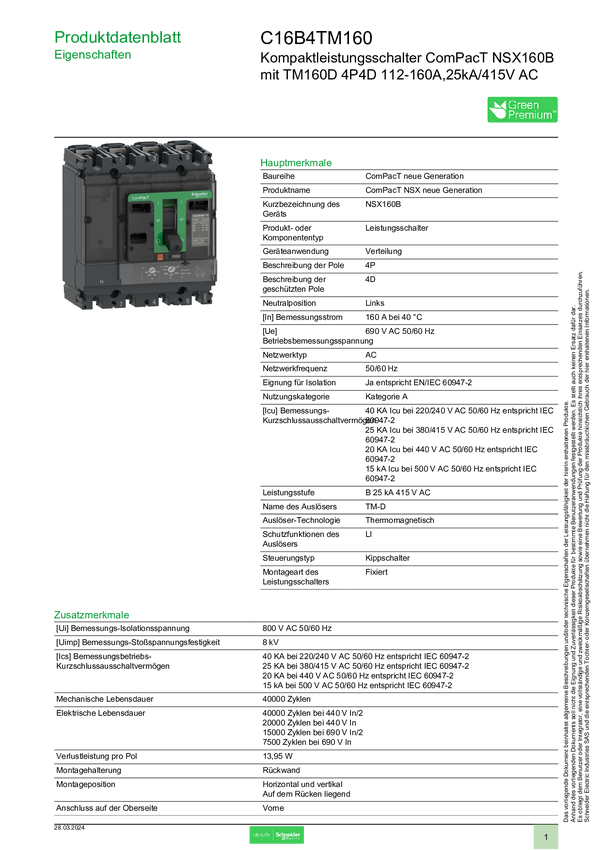 C16B4TM160 Wyłącznik zasilania Schneider Electric C16B4TM160 1 szt.