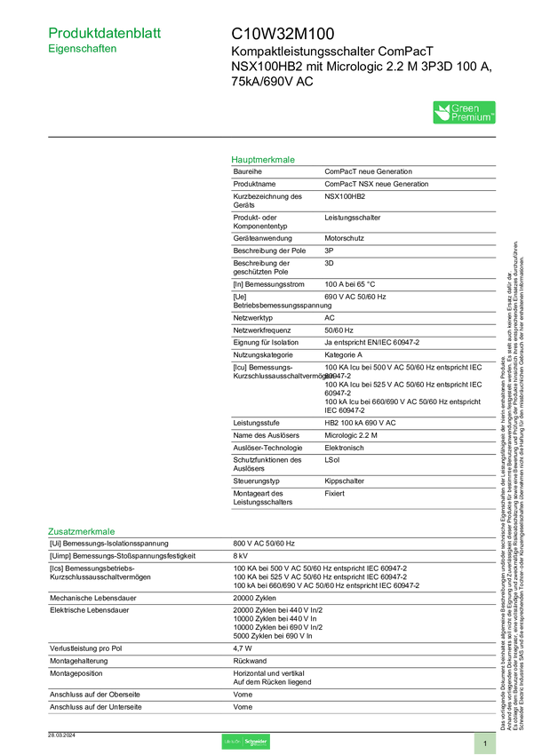 C10W32M100 Wyłącznik zasilania Schneider Electric C10W32M100 1 szt.