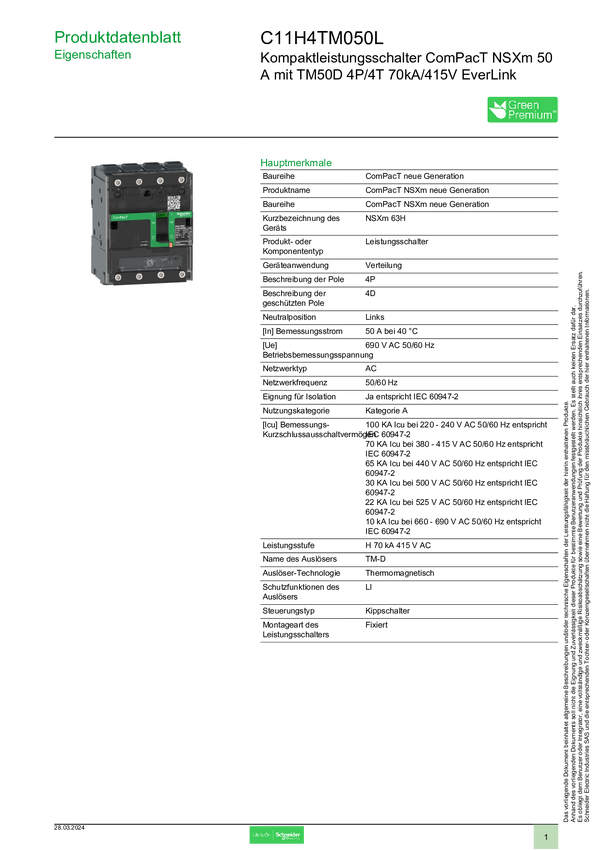 C11H4TM050L Wyłącznik zasilania Schneider Electric C11H4TM050L 1 szt.